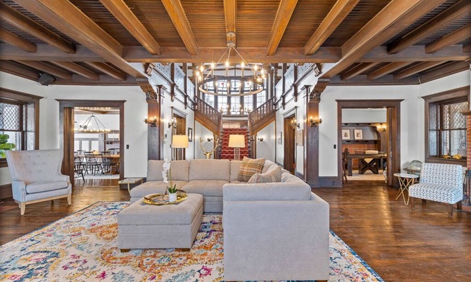 Green Farm is a historic lakefront mansion with a private dock located in Lakewood, NY on the shores of Chautauqua Lake. This nearly 10,000 square foot 8 bedroom home was built by millionaire banking and tobacco heir Paul Sorg in 1906. It has been lovingly renovated while keeping its historic character. Every room has unique features that could never be recreated today, featuring hand-carved moldings depicting characters from Geoffrey Chaucer’s Canterbury Tales, the original ice chest and a stunning bridal staircase. Green Farm was the personal home of Sorg and his wife until her death in 1929, it was then converted to an exclusive tea room that even remained operational during World War II. Green Farm is now a year-round vacation home where travelers enjoy the beautiful home, the Chautauqua Lake dock exclusive to Green Farm, the famed Chautauqua Institution, walking distance restaurants, coffee shop, park, tennis, and all that the greater Chautauqua area has to offer. To learn more about the history of this beautiful property, be sure to check out greenfarmchq on the web!