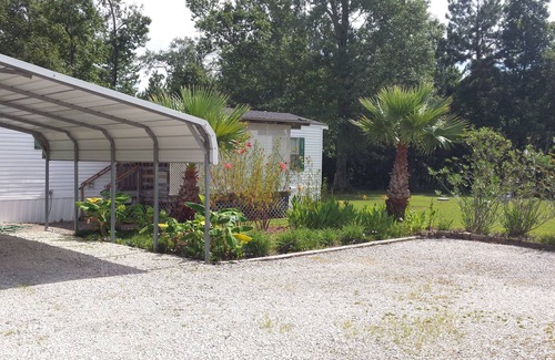 My custom 2 bedroom mobile home is located in a quiet rural neighborhood south of Silsbee. Close to town for shopping but far enough away for quiet relaxation. The space is very Tropicana with pristine landscapes. And we feature no snow. One hour to the Gulf Coast 2 hours to Houston 4 hours to New Orleans.