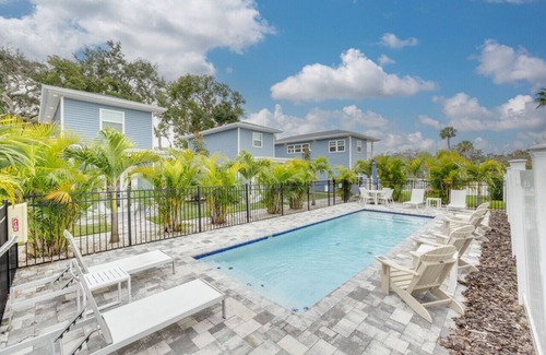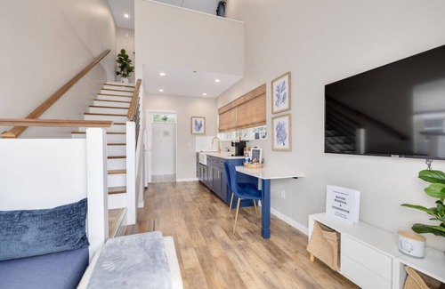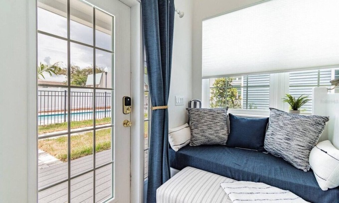 Georgeous newly built luxury tiny home in the heart of downtown Dunedin. This charming 1 bedroom 1 bath home is has everything you need for a perfect stay in our perfect little town. Only steps away from all the best restaurants, breweries, shops and activities in Dunedin. Dunedin was voted one of the best walking towns in America. Just a short drive to beaches including Honeymoon Island and Clearwater Beach. If you don’t feel like driving you can just relax in the pool.