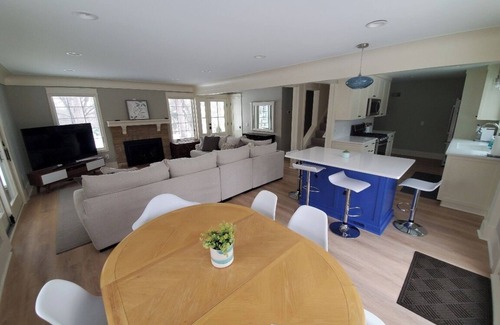 Fully remodeled with all the amenities. Gas insert fire place on main floor. Heated sunroom in cooler temperatures. Large screen TV's on main floor and basement. Washer & dryer on site. Game room with pool and ping pong. Plentiful parking for your friends and family!