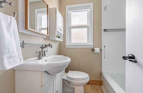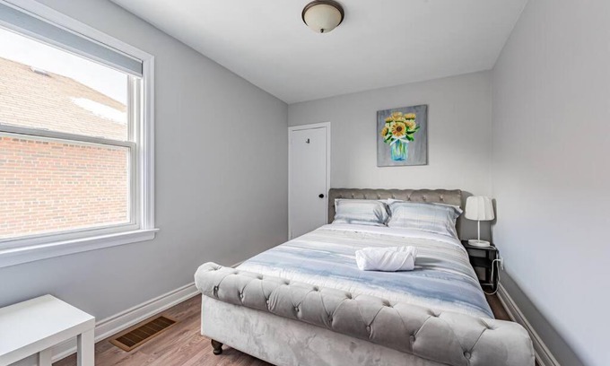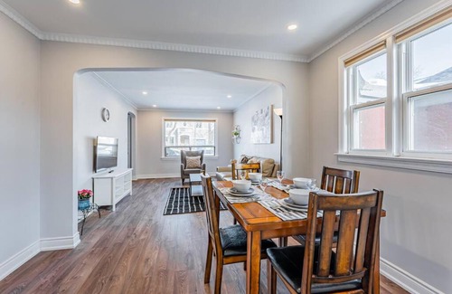 Cheerful 3 Bedrooms Free Parking (Entire house) offers accommodations in Toronto, 8 miles from Rogers Centre and 8.1 miles from CN Tower. The property is around 6.4 miles from BMO Field, 6.5 miles from Budweiser Stage, and 6.9 miles from Exhibition Place. The chalet offers free Wifi and free private parking. The air-conditioned chalet consists of 4 bedrooms, a living room, a fully equipped kitchen with a dishwasher, and 2 bathrooms with a shower and slippers. Towels and bed linen are offered in the chalet. For added privacy, the accommodation features a private entrance. Guests can relax in the garden at the property. Toronto Symphony Orchestra is 8.6 miles from the chalet, while University of Toronto is 10 miles from the property. The nearest airport is Billy Bishop Toronto City Airport, 7.5 miles from Cheerful 3 Bedrooms Free Parking (Entire house).