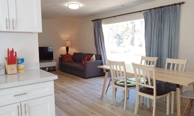 Completely renovated 1 bedroom/1 bathroom house centrally located at the “Y” near restaurants, breweries, grocery stores, bike trails and beaches. Sitting on ½ acre land, away from street and neighbors, with ample parking, this cozy vacation home is perfect to enjoy all Lake Tahoe has to offer. Walk to Barton Hospital.