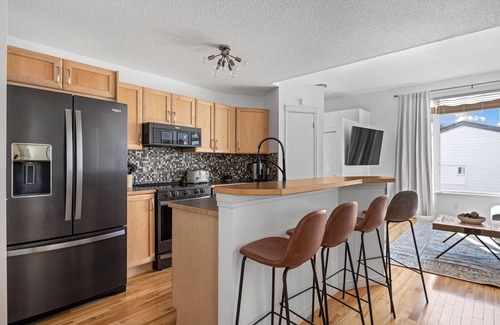 Experience a cozy winter getaway at our comfortable home-away-from-home in Alberta. Enjoy charming decor, two spacious living areas, a convenient main-floor bedroom, and a fireplace perfect for winter.