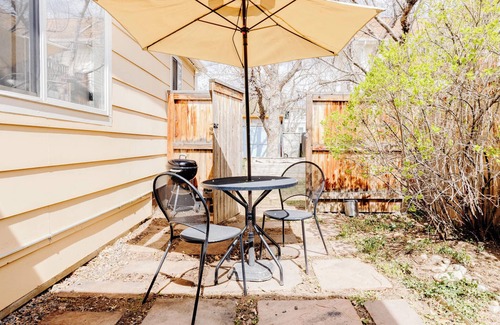 Sunny & comfy studio suite in heart of downtown. Historic Whittier neighborhood. Private entrance and ALL-PRIVATE use of space. Sitting/working room + bedroom + newly renovated bathroom. Washer/dryer, mini-fridge, coffee maker and hot water kettle (microwave and toaster available upon request). Mountain views from front window. Separate fenced rear patio. Walk/bike (2 blocks) to great restaurants, coffee shops, stores, Pearl Street Mall, Boulder Creek, etc. Street parking. House Rules: No smoking anywhere on the property please.