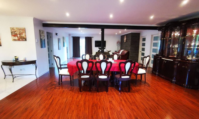 Relax with your whole family and friends at this peaceful and unique house! Secluded and very quiet location. Fully equipped, luxury furnished, NO STAIRS spacious 5 bedrooms; each room is stylish & unique! Huge living room with a fireplace in the center! 1hr from Montreal, mins away from Ste-Agathe-des-Monts and Mont-Tremblant and close to all options offered in Laurentians. Steps away from the magnificent Menard Lake with no fees municipal beach. Huge yard. High speed WiFi&TV included.