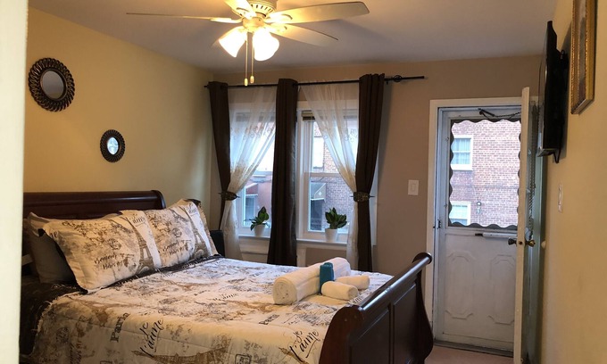 Welcome to CheKell's beautiful & Cozy 2 BR split level 1st floor apartment in Canarsie, Brooklyn- 1 minute from the #82 & #6 bus and 7 min to L train and close to airports. This space is great for singles, couples, family or friends and features a small porch in one of the bedrooms or you can sit in the front yard and relax. There is a comfortable queen sized bed, and a folding bed or floor mattress (available upon request); AC, ceiling fan, closet, smart TV and a complementary bottle of water. There is no parking on the property but free parking available on the street paying attention to parking signs