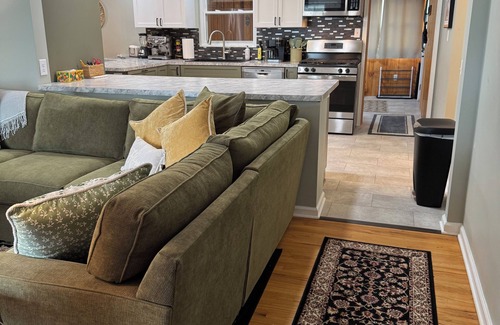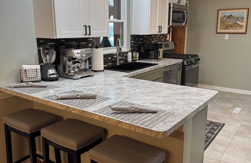 Our desire is for our guests to feel exclusively considered before their arrival. Therefore, we don't cut corners! The "Cherry Tree" vacation Home is perfectly outfitted with luxury furnishings and well located. You'll love the open concept flowing effortlessly from living room to kitchen to dining room. This home features current colors and plenty of windows for sunlight. For entertaining, there is seating for 9 in the dining area table and kitchen island. Prepare grand meals or picnic snacks in the fully stocked kitchen. The open concept kitchen is new, complete with stainless steel appliances, Keurig Duo Coffee maker, Breville Expresso machine and other small appliances. The home is fully air conditioned. Enjoy free High Speed Wi-Fi, the comfortable sectional, new king and queen beds featuring hypoallergenic 14-inch plush mattresses, new bed linens and coverings, and the 65 inch living room Amazon Fire 4K TV.