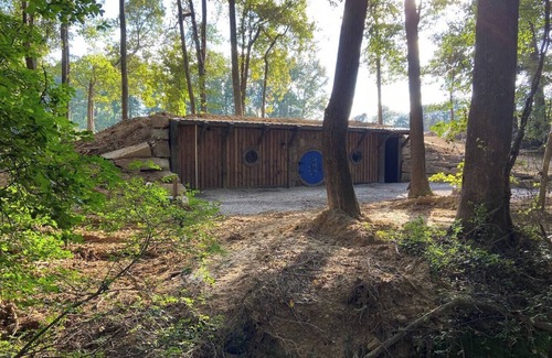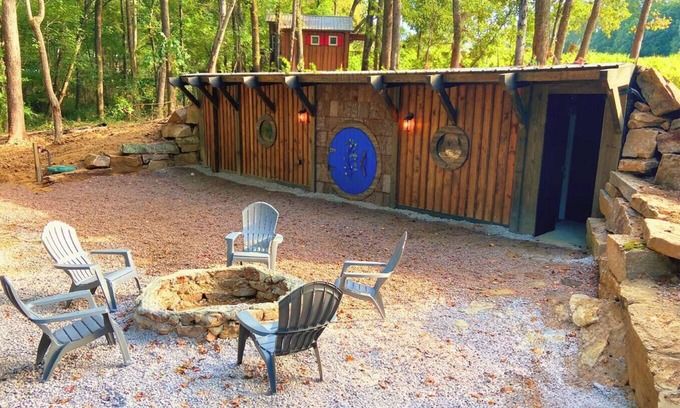 The Lucy Lus hobbit house is a one-of-a-kind experience underground. It has a spacious 400 sq feet with a queen bedroom, entryway room, living room with a queen sofa bed, and a full bathroom. It has AC/ Heat, a flushing toilet, and a shower. The Hobbit House sits on 27 acres with the 8 other treehouses we have built. Come stay in one of the most unique stays in the country, you won't be disappointed. The Hobbit House will have four rooms in all. It will have a bedroom with a queen bed. It will have a living room area with a pull out sofa couch, TV, DVD player and a window looking out onto the grounds. The bathroom will have a stand up shower, sink and cabinet, and flushing toilet. The forth room is the entry way room and it will have a sitting area and table to play games on or do whatever you want.