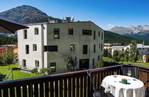 Pontresina 9 km from St. Moritz: Apartment house "Corvatsch". In the resort, in a central, quiet, sunny position on a slope, 300 m from the edge of the forest, 7.6 km from the lake. For shared use: property, lawn for sunbathing. In the house: storage room for skis, central heating system, washing machine, tumble dryer (for shared use), drying room. Steep motor access to the house. 4x4 car recommended in winter. Communal covered parking. Parking space or garage only for small to medium-sized cars. Dimension: height 205 cm width 200 cm. Shop 200 m, supermarket 650 m, restaurant 200 m, bakery 700 m, café 700 m, bicycle rental 400 m, bus stop "Pontresina, Post" 550 m, railway station "Pontresina" 1.4 km, indoor swimming pool 400 m, lake St. Moritzer See 7.6 km. Golf course (18 hole) 6 km, surf school 14 km, tennis 1.4 km, indoor tennis centre 10 km, minigolf 9.7 km, riding stable 1.6 km, walking paths from the house 300 m, cycle lane 700 m, cable car 7 km, ski lift 350 m, ski rental 400 m, ski school 200 m, children's ski school 200 m, sled run 4 km, cross country ski track 1 km, ice rink 1.4 km, children's playground 1.4 km. Nearby attractions: Museum Alpin 220 m, Kirche St. Maria 220 m, Alp-Schaukäserei Morteratsch (Sommer) 5.3 km, Segantini Museum in St. Moritz 10 km, Bernina Express UNESCO Welterbe. Well-known ski regions can easily be reached: Corviglia Piz Nair 7 km, Diavolezza - Lagalb 11 km, Corvatsch - Furtschellas 15.5 km. Well-known lakes can easily be reached: St. Moritzer See 7.6 km, Silvaplaner See 14.2 km, Silser See 18 km. Hiking paths: Stazerwald & Stazersee, Muottas Muragl, Val Roseg & Val Morteratsch. Please note: Loading and unloading of baggage is possible at the holiday house. Warning: parking spaces placed on top in the garage.