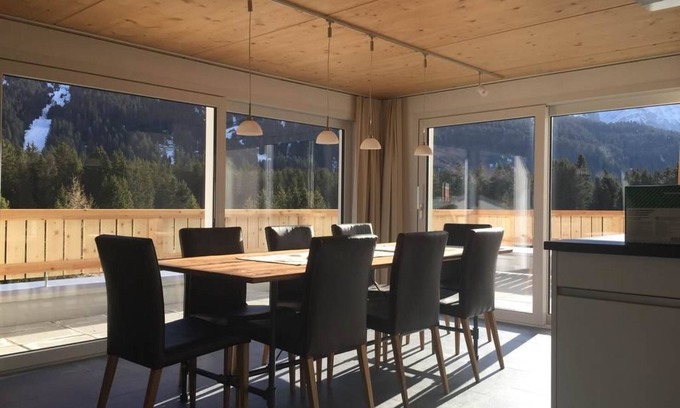 150 m2. More information by the provider: The Chesa Parpan offers over 150 m2 of living spaceeverything you could wish for during your holiday. The contemporary architecture, the spacious floor plan and natural materials leave no desires. The house is located on the slope of the West / East connection and at the starting point for weekly night skiing on the Alp Stätz slope. Fun right on your doorstep! The bus stop "Parpaner Höhe" is a 2-minute walk from us away. In the summer we are starting point for many beautiful hiking and biking tours! The Heidsee is 10 min. walking distance away from us.