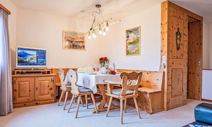 Chesa Polaschin B - B10 - Sils by Interhome has 2 Bedrooms , 1 Bathroom, and max occupancy of 4 people. The minimum rental for this property is 1 nights, but this can change depending on the season you plan on staying. Previous guests have given good rated it, and VRBO labeled it a top-rated Apartment because of the excellent services rendered by the owner or manager of this Apartment, and has consistently provided great experiences for their guests. Most families or guests that use it recommend it to their friends and some of them are repeat guests. Apartment has a friendly neighborhood, and the Sils-Maria has interesting places to visit. If you want to learn more about the Apartment in Sils-Maria, such as places to visit and things to do nearby, you can check below to learn more.