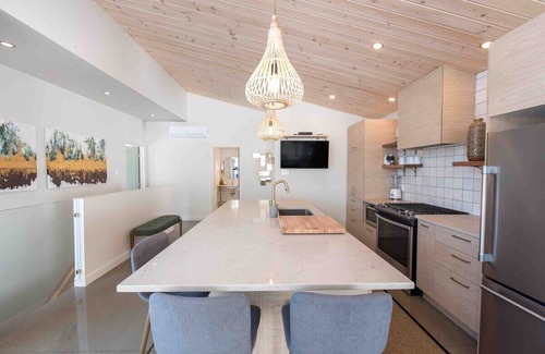With numerous amenities including an outdoor space with a wood fireplace and hot tub, as well as an interior space boasting prestigious elements, this luminous sanctuary, perfect for hosting friends and family, is the ideal place for a quality and tranquil stay. Decorated entirely by a professional designer, this two-story haven features an indoor Stuv wood fireplace, radiant concrete floors, a master suite with ensuite bathroom and freestanding bathtub with a view. Two other equally elegant and comfortable bedrooms will contribute to making your stay unforgettable. One of them offers a king-size bed, while the others offer queen-size beds. This home has all the services and essential accessories for your comfort.
