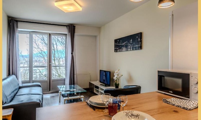 Chez Dams I T2 I Annecy is located in Annecy, just 22 miles from Rochexpo and 22 miles from Bourget Lake. This property offers a private pool, free Wifi, and free private parking. Jet d'Eau is 28 miles from the apartment and St. Pierre Cathedral is 28 miles away. The apartment consists of 1 bedroom, a living room, a fully equipped kitchen with an oven and a coffee machine, and 1 bathroom with a shower. Towels and bed linen are provided in the apartment. The accommodation is non-smoking. Stade de Genève is 25 miles from the apartment, while Cornavin Train Station is 28 miles away. Chambéry-Savoie Airport is 26 miles from the property.