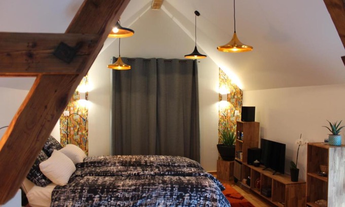 Chez Jane is set in the fortified village of Dambach-la-Ville. The independent loft boast a kitchenette, a flat-screen TV with cable channels, and a private bathroom. Free WiFi is included. The loft in the guest house is equipped with a coffee machine. It features city views, a seating area and a kettle. Continental and à la carte breakfast options are available each morning at Chez Jane. Guests at the guest house will be able to enjoy activities in and around Dambach-la-Ville, like hiking. The guest house is situated on the Camino de Santiago pilgrimage trail, 17 km from Mont Saint-Odile and 19 km from Ribeauvillé. Guests can store bikes and motorbikes in the secure courtyard. Strasbourg is 37 km from Chez Jeanne, while Colmar is 28 km from the property. The nearest airport is Strasbourg International Airport, 29 km from the accommodation.