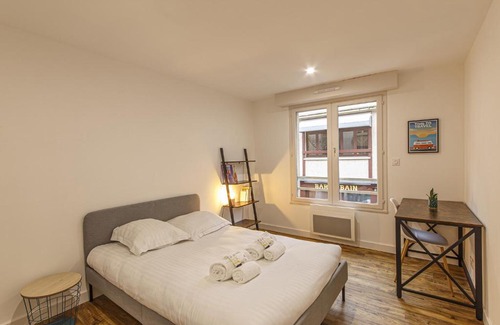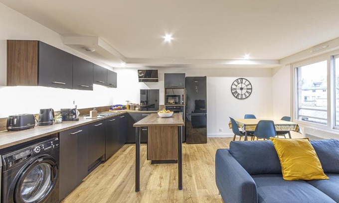 Situated 6.6 km from Laval-Changé Golf Course, 39 km from Vitré Castle and 43 km from Rochers-Sevigne Golf Course, Chez Marius - Appartement 3 chambres - Laval features accommodation located in Laval. The accommodation is 45 km from Solesmes Abbey, and guests benefit from private parking available on site and free WiFi. The apartment features 3 bedrooms, a kitchen with fridge and oven, and 2 bathrooms with a shower, a hairdryer and a washing machine. Towels and bed linen are available in the apartment. Sable Solesmes Golf Course is 48 km from the apartment, while Ribaudières Petites is 2.8 km from the property. The nearest airport is Rennes–Saint-Jacques Airport, 79 km from Chez Marius - Appartement 3 chambres - Laval.