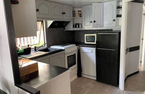 While you're here, you can enjoy all the comforts of home and more, including WiFi and a TV, as well as air conditioning and an ironing board. Other amenities include laundry facilities, towels, soap, and toilet paper.