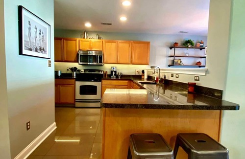 Modern Comforts: We have a comfortable open floor plan and a spacious kitchen. The kitchen is fully equipped with courtesy essentials like sugar and spices. We provide a variety of small appliances for your convenience, including a rice maker, waffle maker, pancake griddle, express egg cooker, citrus juicer, and more!