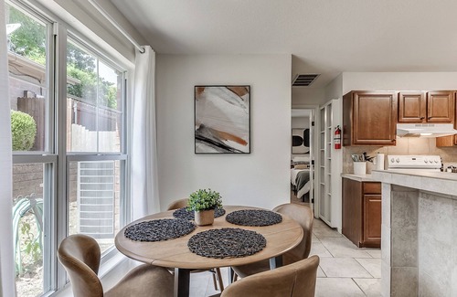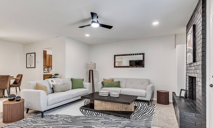 Mid Century Modern Charm! Unwind in this spacious & stylish 4-bedroom 2-1/2 bath home. Whether you’re traveling with family, friends, or colleagues, this home offers the perfect blend of function and flair. Inside, you’ll find a thoughtfully decorated space featuring a large Smart TV, plus another in the master suite for private viewing. High-thread-count bedding ensures a restful sleep. Start your mornings at the coffee bar or end your evenings outside in the backyard with outdoor seating.