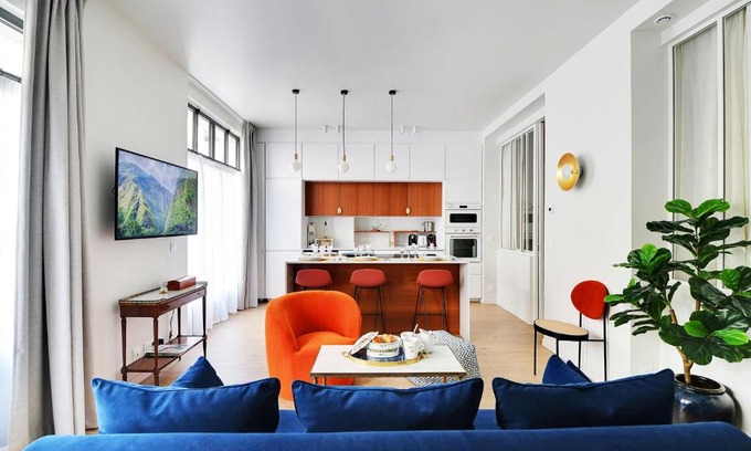 Chic Apartment -2BR-6P- Invalides in Paris offers accommodations with free Wifi, a 19-minute walk from Orsay Museum, 1.2 miles from Luxembourg Gardens, and 1.5 miles from Sainte Chapelle. The property is around 1.5 miles from Musée de l'Orangerie, 1.8 miles from Eiffel Tower, and 1.8 miles from Tuileries Garden. The property is 0.9 miles from the city center and a 14-minute walk from Rodin Museum. This apartment includes 2 bedrooms, a living room and a flat-screen TV, an equipped kitchen with a dining area, and 2 bathrooms with a shower and a washing machine. Towels and bed linen are featured in the apartment. For added privacy, the accommodation features a private entrance. There is an on-site coffee shop. Louvre Museum is 1.9 miles from the apartment, while Paris Expo – Porte de Versailles is 2 miles away. Paris - Orly Airport is 8.7 miles from the property.