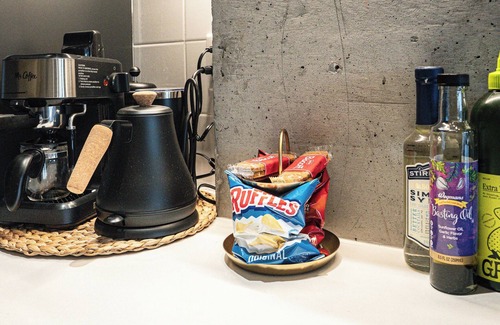 Get ready to relax in this amazing studio in Newark. This cozy space features a comfortable king bed, a fully equipped kitchen, a modern bathroom, and vibrant decor. Guests can enjoy amenities like a washing machine, dishwasher, AC, WiFi, office space, balcony, and access to a shared fitness room and more. It's easy to see why you'll be able to unwind at our place.