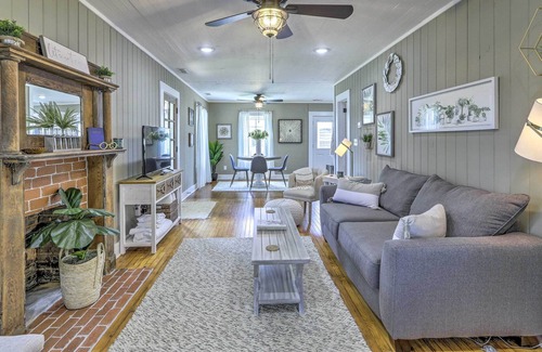 Experience the perfect blend of small-town comfort and Southern hospitality at this Carrollton cottage, a 1-bedroom, 1.5-bathroom vacation rental just a short walk to the town square. Look forward to arriving at this thoughtfully updated home, complete with a Smart TV, stylish decor, and plush living space. Homebodies will love relaxing in the front yard or preparing a meal in the bright kitchen, while adventurers will be just a short drive to the Carrollton Greenbelt and Little Tallapoosa Park.