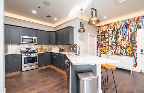 At Central Perch, unwind, savor, and create lasting memories in the heart of downtown, where modern amenities and a welcoming atmosphere make every moment special. Enjoy chef-friendly features in the kitchen, a cozy living room with crown molding lighting, and spacious bedrooms adorned with king-size beds. Entertainment options include a shuffleboard table, smart TVs, and a stereo system, ensuring your stay is both enjoyable and memorable.