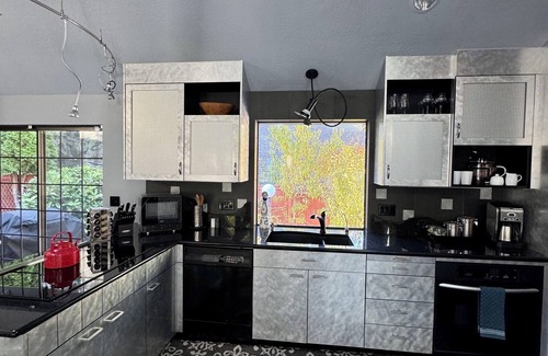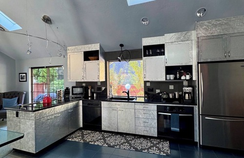This unique architect's delight in Eugene offers 3 beautifully appointed bedrooms with a king, queen, and two twin beds. The 3 bathrooms are equipped with all the essentials, including hairdryers and luxurious linens.