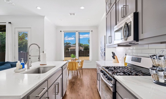 Just a quick 5-minute drive to Downtown and within 10 minutes of bars and restaurants in Bishop Arts & Trinity Grove Districts! This brand new +2400 square foot home with a large backyard will easily accommodate your next game-day watch party, company retreat, or intimate wedding. With a prime location in Dallas yet a secluded neighborhood feel, this home gives you everything you need for a perfect getaway