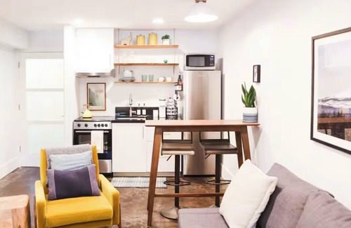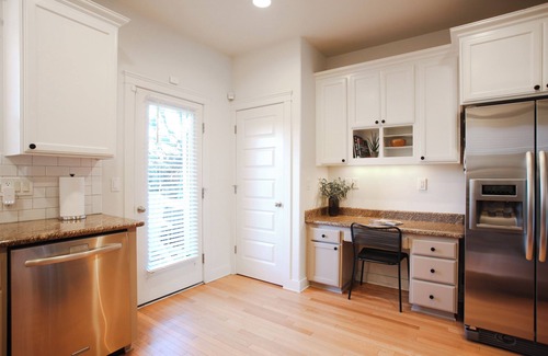 This is a stylish modern 3 story townhouse in prime location very close to the Max and walking distance to Mississippi and N. Williams. The 1st floor studio has a small kitchenette and private bathroom. The main floor has a large kitchen with a wine fridge, dining room, and living room with fireplace and covered balcony. There is a small backyard with tea lights and relaxing sitting area that is accessible from the main floor. The 3rd floor has 2 bedrooms and 2 full bathrooms and laundry room. Property also listed on Airbnb.
