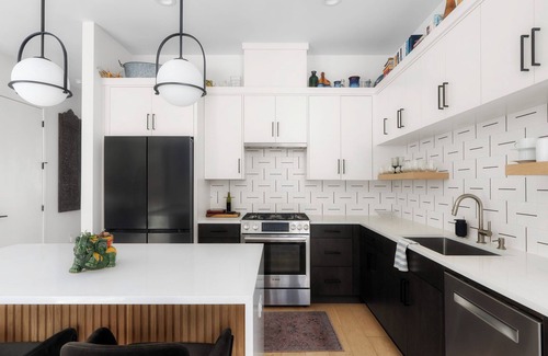 When you arrive at the Chic Poolside Escape, you’re welcomed by a carefully styled entrance that sets the stage for your stay. On the first floor, the bunk room with three twin beds sits alongside a full bathroom, while the main living area brings everyone together. The kitchen opens seamlessly into a bright lounge, and from there sliding doors lead straight to the backyard.