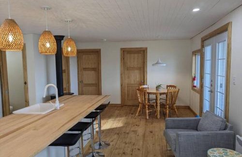 Featuring a private beach area, water sports facilities, and free Wifi, Chic refuge sur le bord de l'eau et des sentiers motoneiges! is a recently renovated chalet 19 miles from Palais Municipal Theater and 20 miles from Monts Valin National Park. This property offers access to a terrace and free private parking. On clear days, guests can head outside to enjoy the chalet's outdoor fireplace. The air-conditioned chalet is composed of 2 separate bedrooms, a living room, a fully equipped kitchen with a dishwasher and oven, and 1 bathroom. Towels and bed linen are available in the chalet. For added privacy, the accommodation has a private entrance and soundproofing. During warmer months, you can make use of the barbecue facilities and eat on the private balcony. For guests with children, the chalet features indoor and outdoor play areas. Skiing and cycling can be enjoyed nearby, while a ski equipment rental service and a ski pass sales point are also available on-site. Bagotville Airport is 19 miles from the property.