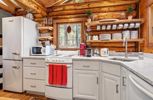 Chic, updated log cabin nestled in the pine trees of Sprucewold! | Cabin in Boothbay Harbor