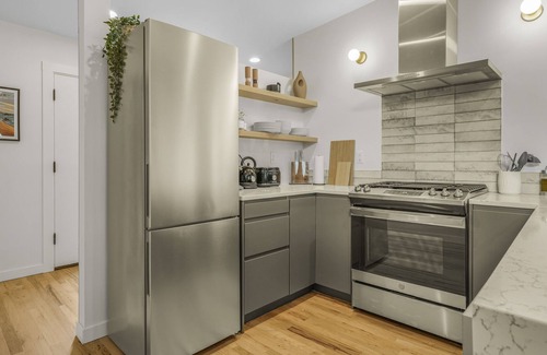 Find everything you need to prepare delicious tasty meals in the sleek modern kitchen, which features a full suite of stainless steel appliances. Handy extras include a toaster, electric kettle, and coffee maker. For some outdoor cooking, enjoy the newly added Traeger Pellet Grill.