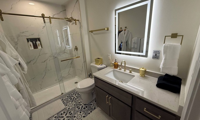 The design is intentional. It’s not just a place to crash — it’s a space to enjoy. With high ceilings, modern amenities, and thoughtful finishes, it stands apart from generic short-term rentals. You’ll feel at home the minute you walk in.