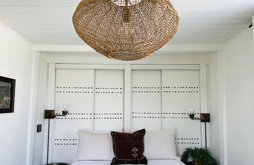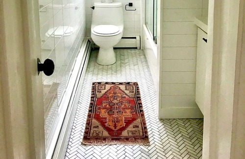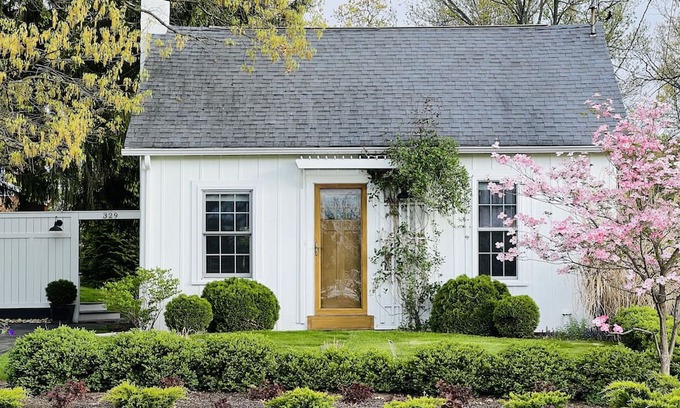 Relax with friends in the outdoor spa tucked within the garden or whip up dinner in the refined black kitchen to serve on the shaded deck of this breezy, Cape Cod-style retreat built in 1948. Set on the north side of State College, the climbing pink honeysuckle and cozy interiors add to its vintage charm.
