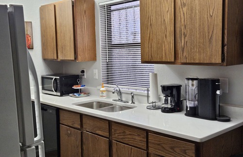 No smoking, no pets, no parties, quiet area. Bonus garage/workout area with TV in the garage. There are TV's, extra linens, and towels in each room...No eating your room, however, .Smoking is permitted on the patio only. Free parking is provided on driveway and a nearby parking area........We welcome long term guests... (14+ nights) Individuals, Company workers, and traveling nurses.....Common areas are on 1st level. The property is 5 minutes away from Walmart, Target, Sam's, Costco, Quail spring Mall, Main Event, Top Golf, Many new eateries, entertainment, St. Anthony and Mercy Hospitals, etc.......