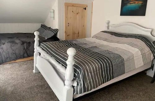 The entrance to this charming 1850s house is through the left side front porch into the living room. The space offers one queen bedroom downstairs, upstairs has one queen bed with a full size built in bed. There’s a full size walk-in shower with a handicap bar. Full-size kitchen for all your cooking needs to enjoy a meal at home. Washer and dryer is in the kitchen. Dining room is off the kitchen. Living room has and 50” tv that features free Netflix . This home offers are recreation room where you can converse, play games or just share a drink and memories together, with a wood fireplace, bar area, and pool table this room will be one of the highlights to your stay. There’s a high top table in the room that sits between two corner window so you can enjoy a drink or meal while listening to the peaceful sound of the river. If you’re traveling with a large family or lots of friends ,There is additional space upstairs for an extra charge of 300 per night for 4 quest plus added cleaning fees. It features 1 bedroom with a queen size bed and 1 bedroom with a full sized bed. There’s also a kitchen, full walk in shower living room and washer and dryer. If this is an option for you please message me I’ll send pictures and we can work out the details.