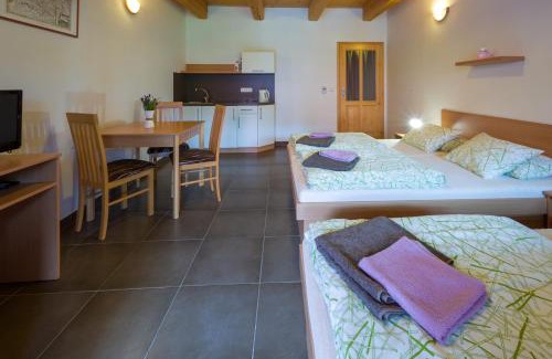 Offering a garden, Chlumecký dvůr provides accommodations in Chlumek. This condo hotel offers free private parking, a shared lounge, and free Wifi. Telč Historic Center is 30 miles from the condo hotel, and Třebíč Jewish Quarter is 16 miles away. At the condo hotel, each unit comes with a wardrobe, a flat-screen TV, a private bathroom, bed linen, and towels. The rooms are equipped with heating facilities. If you'd prefer to cook in the comfort of your own space, you can make use of the kitchenette facilities, which include a fridge, kettle, and a stovetop. St. Procopius Basilica is 15 miles from the condo hotel, while Chateau Telč is 29 miles away. Brno-Turany Airport is 45 miles from the property.