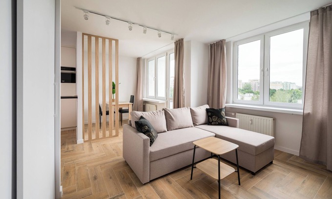 Chodecka Comfort Studio is a stylishly furnished apartment with a living room with a sofa bed and a kitchenette, a bathroom and a balcony where guests can relax and enjoy a morning coffee or an evening glass of wine. Guests have access to a number of practical amenities, including free WiFi, TV, cable TV, iron, washing machine, hair dryer, dishwasher, fridge with freezer, gas stove, oven and kitchen accessories.
