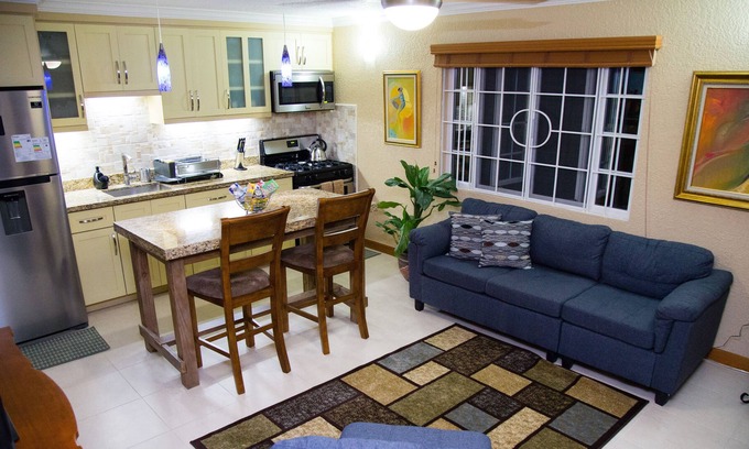 Long Mountain Cabin (LMC) – “Choose To Be Happy!” is situated in a gated community with 24-hour security in 'Long Mountain Country Club' - an upscale residential community that is in close proximity to the business district, New Kingston and Liguanea. Shops, restaurants and other amenities are all close by.