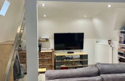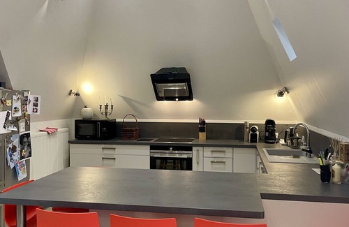 Welcome to our charming apartment in the heart of Vittel! Located on the second floor of a magnificent mansion in front of the train station, our accommodation combines the charm of the old with modern facilities for a most pleasant stay.The apartment, with an area of 43 square meters, offers a bright and spacious space thanks to its high ceilings of 3.50 meters. The kitchen open to the living room is fully equipped to prepare delicious meals, while the living room is the perfect place to relax after a busy day exploring the surroundings.The separate room is furnished with a comfortable queen-size bed to ensure restful nights of sleep. In addition, the most adventurous will be able to enjoy the suspended double bed, a real cabin in the air, for a unique and fun experience.The modern bathroom is equipped with a large walk-in shower, ideal for cooling off after a day outdoors.Located a few steps from the city center, you can easily access shops, restaurants and local attractions.We look forward to welcoming you to our apartment and making you discover all the charm of Vittel during your stay! See you soon
