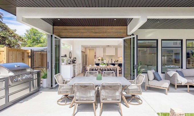 - Fenced backyard with dining area, BBQ & lounge area