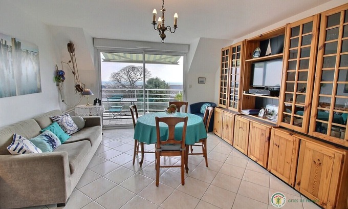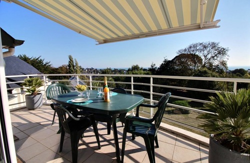 Your apartment located on the 2nd and last floor with elevator includes: living room with sea view and fitted kitchen area, 1 bedroom for 2 people with 1 140x190 bed with access to the terrace with awning, bathroom with shower and WC. Beautiful balcony of 11 m² with sea view. Radio station available. High speed WiFi (ADSL). Baby equipment on request. Entrance with badge, private parking space with gate. (Cooler. Caddy for shopping) Beautiful apartment very well located, on the 2nd and last floor with unobstructed view of the Saint Quay Islands. Close to the Port of St Quay Portrieux where a lively animation reigns during the unloading of shellfish, mackerel, sea bass… It becomes intense from November to April, during the scallop fishing, which becomes the star of the auction… and local tables. A party in his honor is even organized in April, with sea trips, tastings, concerts. The Île de la Comtesse facing the Comtesse beach is accessible on foot at low tide, it promises a great getaway. On the mainland, the GR 34 rises on the point of the semaphore, releasing an invigorating panorama over the Bay. You will appreciate the beautiful Casino beach with its raft-diving board as well as its seawater swimming pool and from the apartment, you can admire the illuminated Val André in the evening and the Cap Fréhel lighthouse with its discontinuous and repetitive light projector .