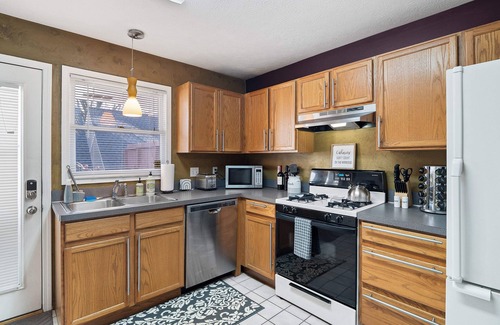Kitchen fully equipped with appliances. An incredible cup of morning coffee provided by Cleveland's own, Rising Star Roasters. Make yourself at home and make meals or just enjoy the neighborhoods many restaurants steps outside the front door!