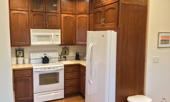 Spacious one Bedroom Apartment attached to a private home but with a separate entrance. Large Living room with TV. Fully Equipped kitchen, everything you need to prepare your meals. Bedroom has Queen size bed and TV. Bathroom has a walk in shower, bathtub and double vanity sink. Private deck with table and chairs for your morning coffee and a grill for your use. Private walking path on the property. Both Roku TV's hooked to Spectrum TV and Netflix . Smoking permitted in outdoor areas only. Pets welcome with no additional fee.