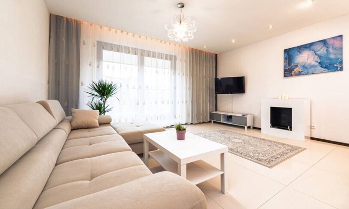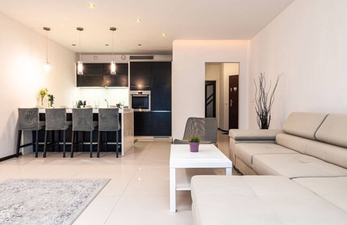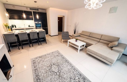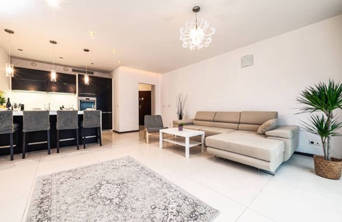 Welcome to your spacious 62m² apartment, perfectly located on the 2nd floor and designed to comfortably host up to 4 people. Managed by Rentujemy, this modern space offers a relaxing stay with two rooms featuring a cozy queen bed and a convenient sofa bed. Whether you're in town for work or leisure, you'll appreciate the dedicated underground parking, fast Wi-Fi, and smart TV for your entertainment. Step out onto the balcony for a breath of fresh air or enjoy the comfort of air conditioning after a busy day.