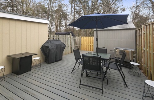 A dining table with seating for four is right in the kitchen, as well as a door that opens to a patio space perfect for the family dog to get some exercise! Make sure to pick up after your pet. The patio has an outdoor table and chair set with seating for four. Enjoy a private enclosed space to hang out, use the grill for dinner, and eat together!