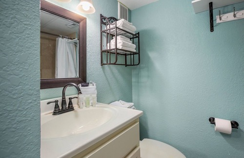 Come and enjoy Clair's Getaway, with fun colors and décor. This comfortable 1/1 condo has a coastal flair with a soft, airy feel. Featuring one private bedroom with a queen size bed. There is a cute, built-in twin bunk bed off the hallway and a queen sleeper sofa in the living room, and will sleep 6 total.