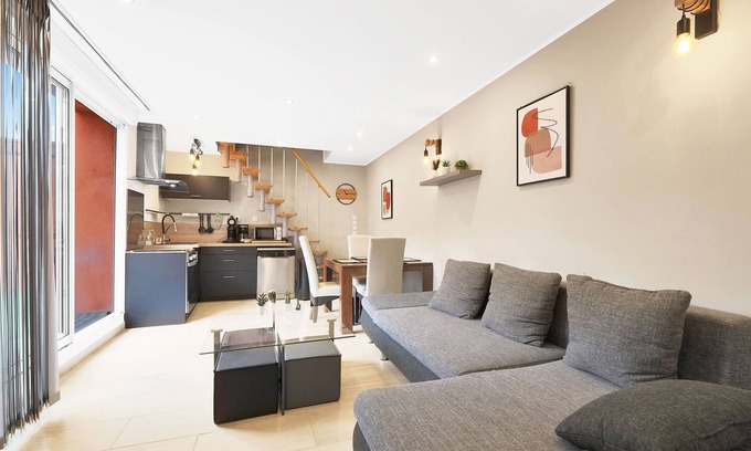 This charming 50 m² apartment in Lens can accommodate up to 4 people. Located on the first floor, it comprises an attractive 30 m² living room with an open-plan fitted kitchen, a beautiful duplex bedroom and a shower room. We're waiting for you!