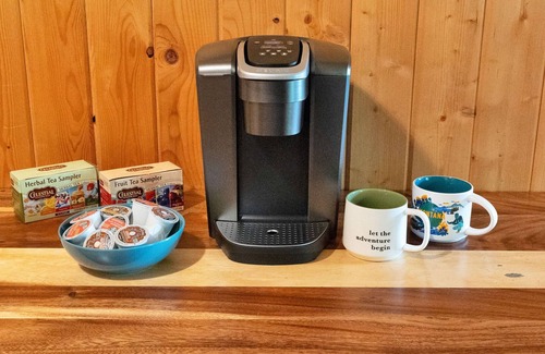 Step inside to find rustic charm paired with modern comforts. At the heart of the cabin is a luxurious king-size bed, ensuring a restful night’s sleep. Cozy up by the fireplace, take advantage of the fully equipped kitchen, or unwind on the private porch with your favorite drink in hand. Guests also have access to shared amenities, including a dry sauna and fitness room, for a rejuvenating experience.